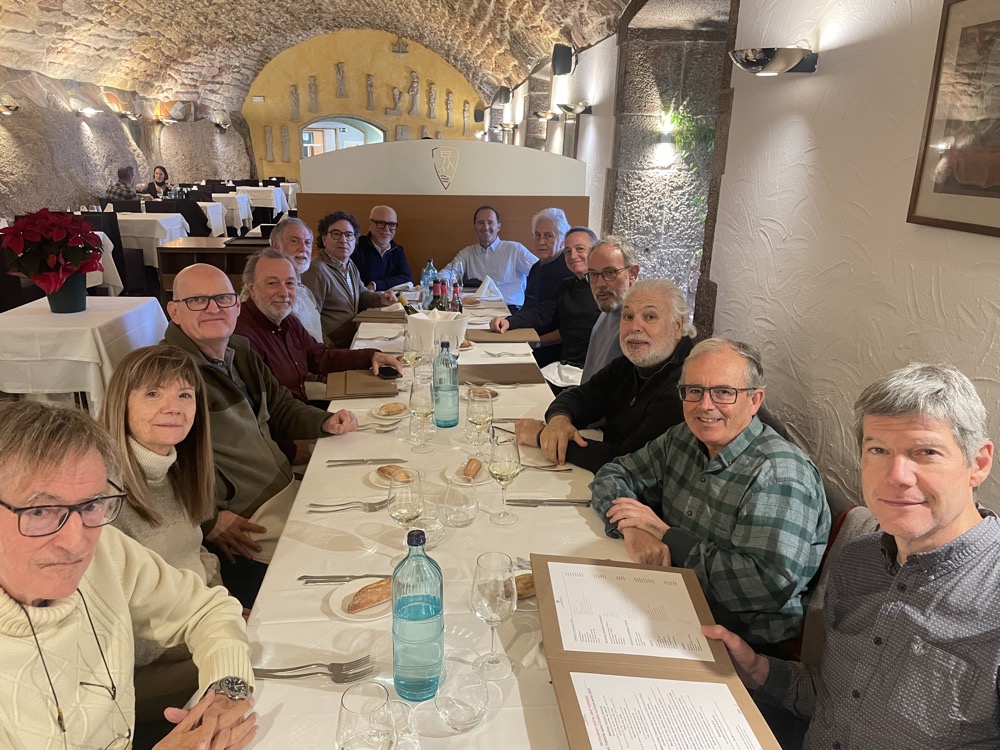 Com sempre en aquestes trobades, el proper pas és anar a dinar. Aquest cop al Restaurant Abat Cisneros, al costat mateix del Museu i la Basílica. El dinar, força bo. Cap a les postres, com ja és habitual, el Joan Biayna, Responsable de la Secció de “Passius”, després de lliurar diferents obsequis als assistents, va fer un breu parlament amb les copes de cava a punt per brindar: